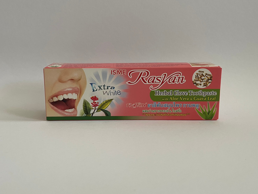 NEW Extra White Isme Rasyan Herbal Clove Toothpaste with Aloe Vera & Guava Leaf (100 g.) by ISME Rasyan